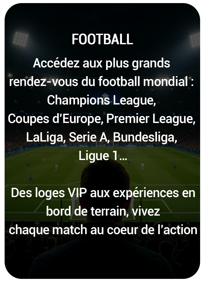 nous concevons des expériences exclusives autour de chaque événement sportif, culturel ou artistique.
